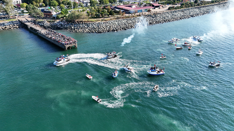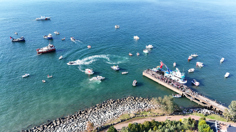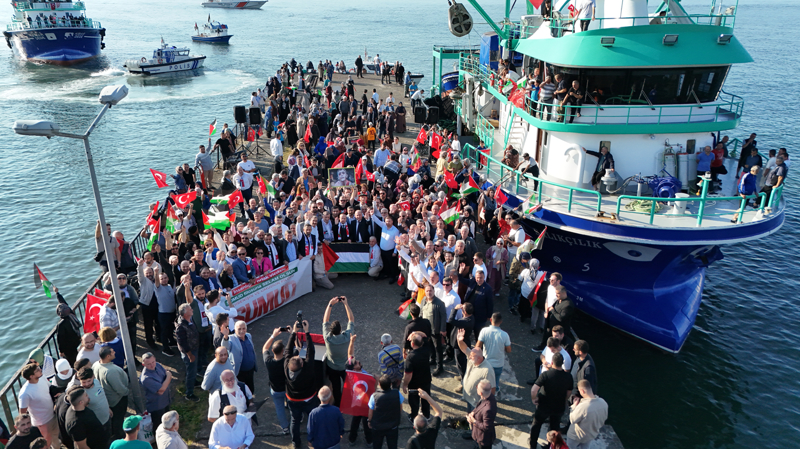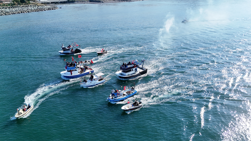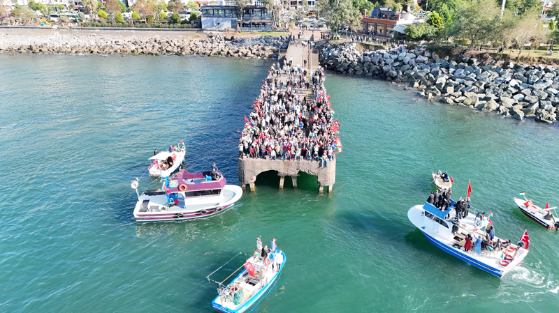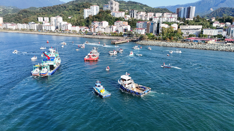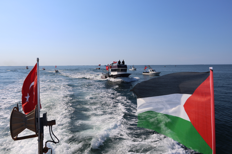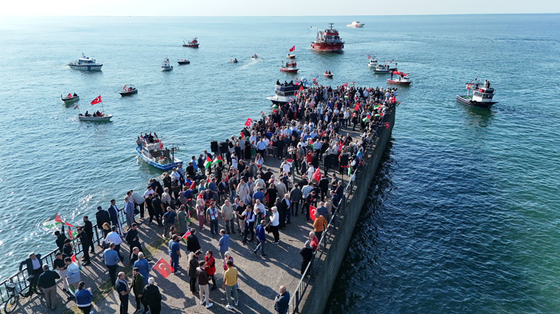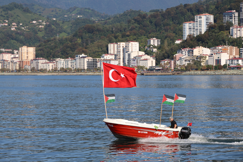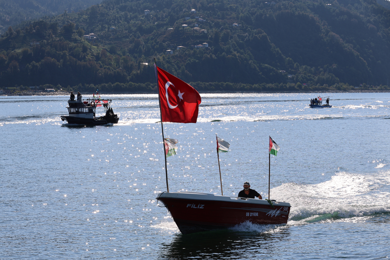 Filistin'e Destek Platformunca organize edilen program kapsamında Arhavi Balıkçı barınağındaki gemi ve teknelere, Türk ve Filistin bayrakları asıldı. Arhavi'den denize açılan ve bir süre sonra Hopa İskelesi'ne gelen gemi ile tekneler, burada vatandaşlar tarafından karşılandı.