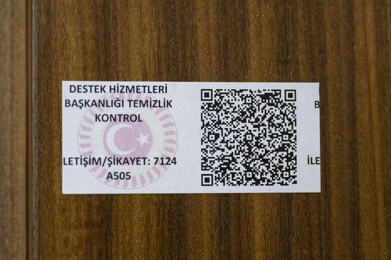 TBMM'de milletvekili odaları, tuvaletleri ve diğer ortak kullanım alanlarında, temizlik hizmetlerinin daha düzenli yürütülmesi için karekod takip sistemi kuruldu. Her kapıya, Destek Hizmetleri Başkanlığı temizlik kontrol etiketleri üzerinde karekodlar yerleştirildi.